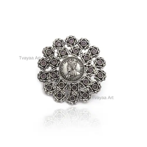 Tvayaa Art Silver Oxidised Stone Ring (Adjustable) Stylish Antique Women Jewellery