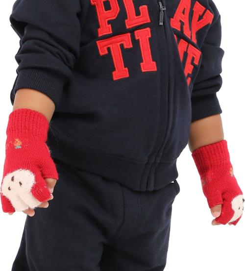 Twinklebuds Unisex Red Self Design Cotton Blend Gloves (1-2 Years)