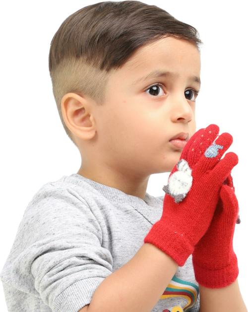 Twinklebuds Unisex Red Solid Knit Gloves (Free Size)