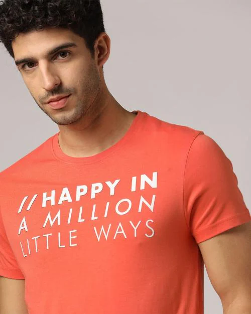 Typographic Print Slim Fit Crew-Neck T-Shirt