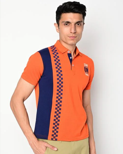 Typographic Print Slim Fit Polo T-Shirt