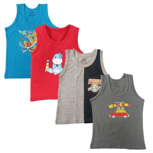 UCARE Boys Multicolor Cotton Blend Pack Of 4 Regular Vest (12 Months-18 Months)
