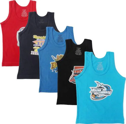 UCARE Boys Multicolor Printed Pure Cotton Pack Of 5 Vest Inner Wear (12 Years-14 Years)