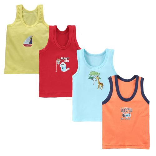 UCARE Boys Multicolor Pure Cotton Pack Of 4 Regular Vest (3 Years-4 Years)
