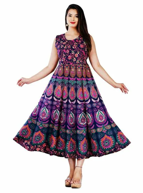 Rangun Women Maxi Cotton Purple Color Printed Dress