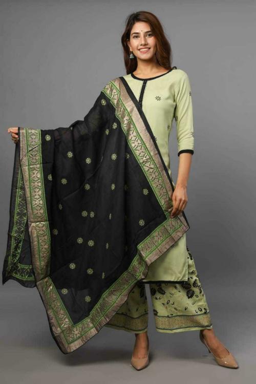Unisets Women Light Green Printed Rayon Kurta and Palazzo Set