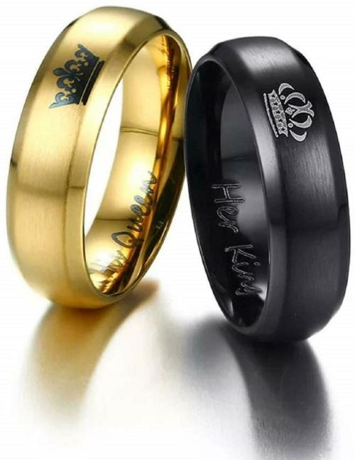 University Trendz 2PCS Her King His Queen Black Titanium Stainless Steel Couple Rings Stainless Steel Rhodium Plated Ring (Men, Women, Boys, Girls)