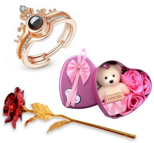 University Trendz Gift Set Jewellery Ring Artificial Rose and Gift Box for Girls and Women