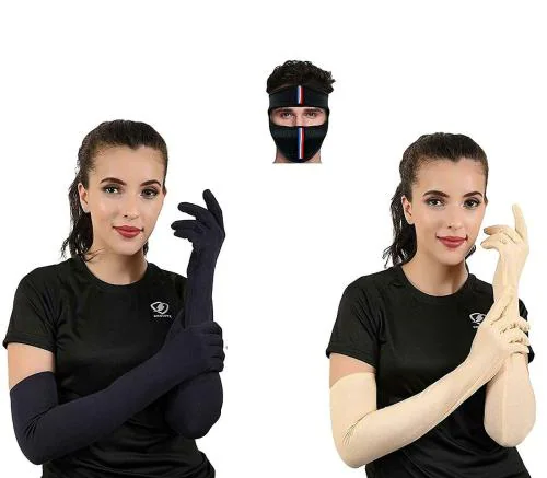 UPAREL Beige And Black Cotton Unisex 2 Pair Long Gloves With Mask 28 x 18 x 3 cm