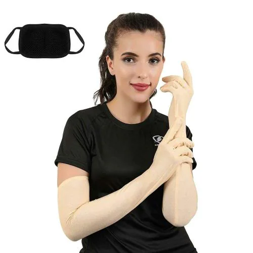 UPAREL Beige Cotton Men And Women 1 Pair Full Hand Gloves With Black Mask 28 x 18 x 3 cm