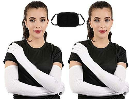 UPAREL White Women Cotton 2 Pair Full Hand Gloves With Black Mask