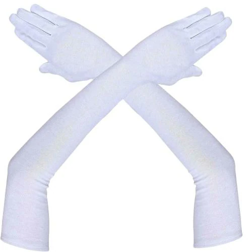 UPAREL White Women Cotton Full Hand Gloves, 1 Pair
