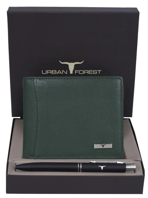 Urban Forest Oliver Green RFID Blocking Leather Wallet & Pen Combo Gift Set for Men