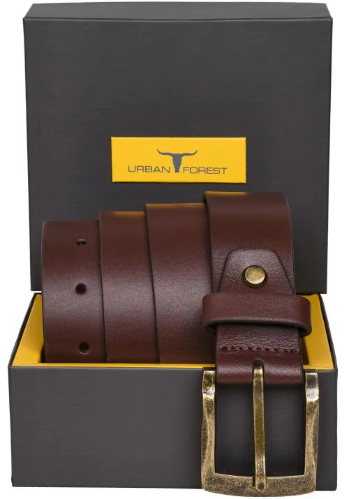 Urban Forest Smooth Brown Casual Leather Belt with Antique Gold Buckle for Men