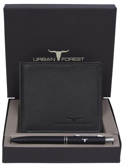 Urban Forest Stan Black Leather Wallet & Pen Combo Gift Set for Men