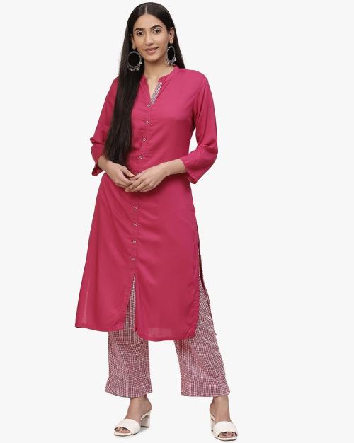 Fuschia Straight Printed Suit Set