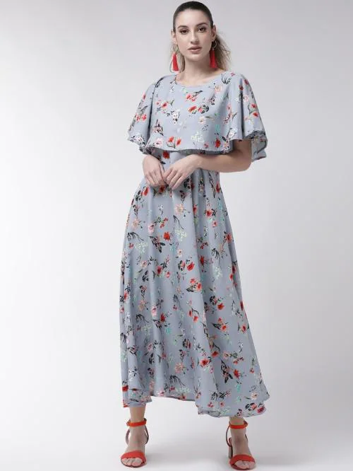 Vaani Creaion Women Grey Crepe A-line Gown Dress - S
