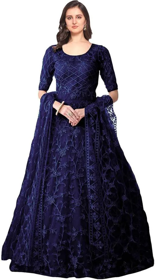 Vaani Creation Women Dark Blue Net Anarkali Gown Dress - Free Size