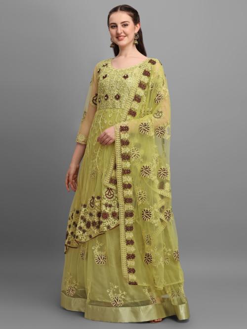 Vaani Creation Women Light Green Embroidered Net Anarkali Gown Dress - Free Size