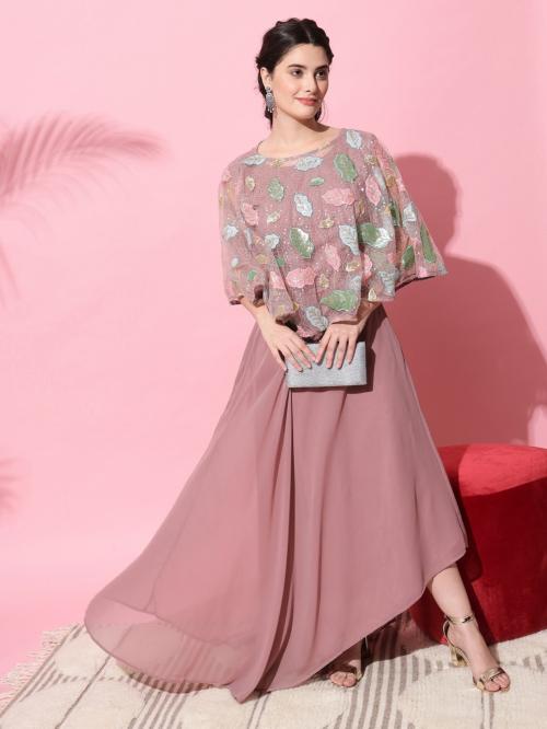 Vaani Creation Women Peach Drop Down Net Anarkali Gown Dress - M