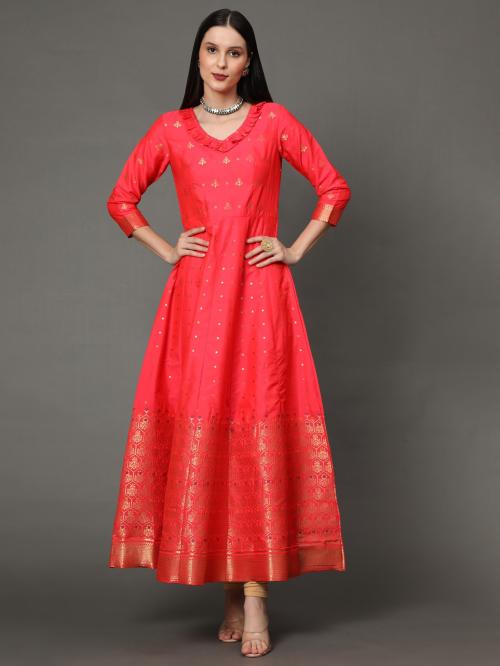 Vaani Creation Women Pink Jacquard Anarkali Gown Dress - Free Size