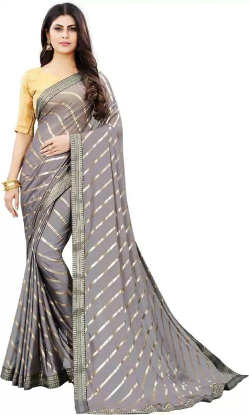 Vajiba Women Grey Art Silk Wedding Leheria Saree, Unstitched Blouse Piece