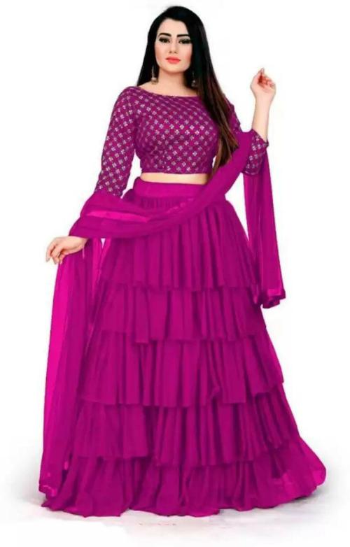 Vajiba Women Pink Net Casual Semi Stitched Lehenga Choli, Unstitched Blouse Piece