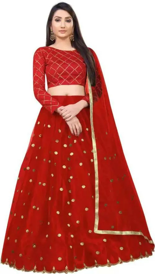 Vajiba Women Red Nylon Semi Stitched Lehenga Choli