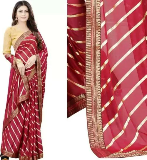 Vajiba Women Red Striped Art Silk Leheria Saree