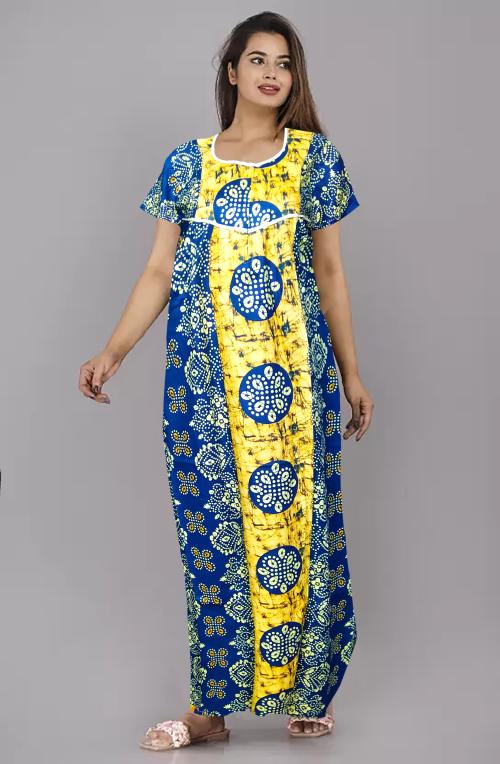 Vanillafudge Women's 100% Cotton Plus Size Printed Maxi Nighty Sleepwear Comfortable & Soft Cotton (Green) - 3XL) nighty for women |cotton nighty |ladies nighty | maxi | womens nightwear