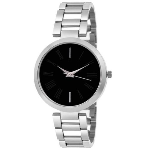 Varni Retail Attrective Black Roman Dial Silver Metal Belt Girls And Woman Watches
