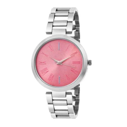 Varni Retail Attrective Pink Roman Dial Silver Metal Belt Girls And Woman Watches