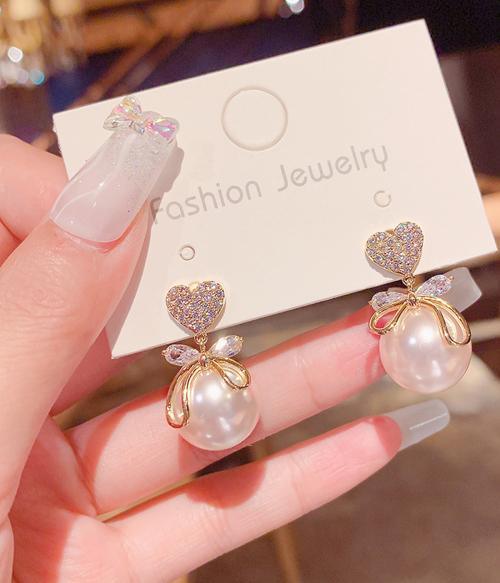 Vembley Korean Fashion Love Bow Pearl Stud Earrings