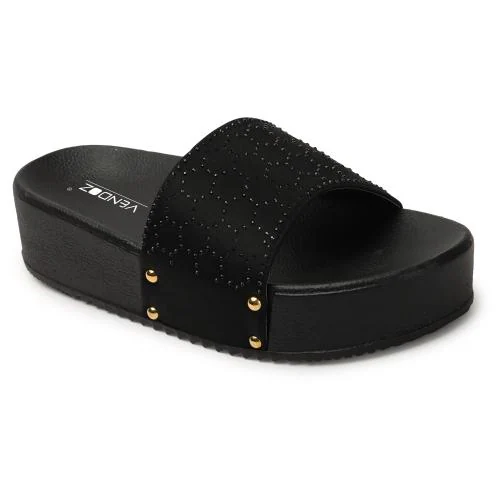 Vendoz Women Black Casual Wedges