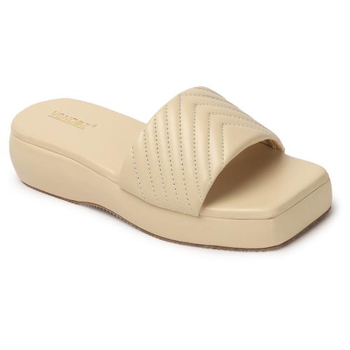 Vendoz Women Cream Casual Wedges