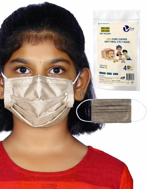 Vibe 4Ply Pure Cooper Carbon Protection Antiviral Kids Earloop Mask(Pack of 20)