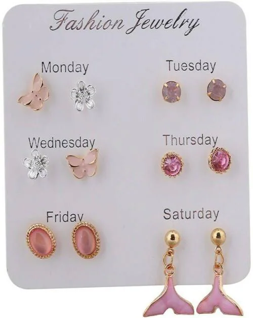 VIEN 6 Pairs/set One Week Earrings Stars Crystal Heart Earring Monday To Sunday Alloy Stud Earring
