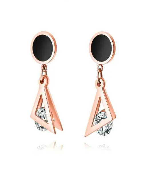 VIEN Womens Fashion Triangle Drop Earring For Women CZ Stainless Steel Drops & Danglers(RG)