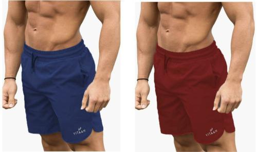 Vitaan Men Blue Polyester Solid Pack of 2 Short