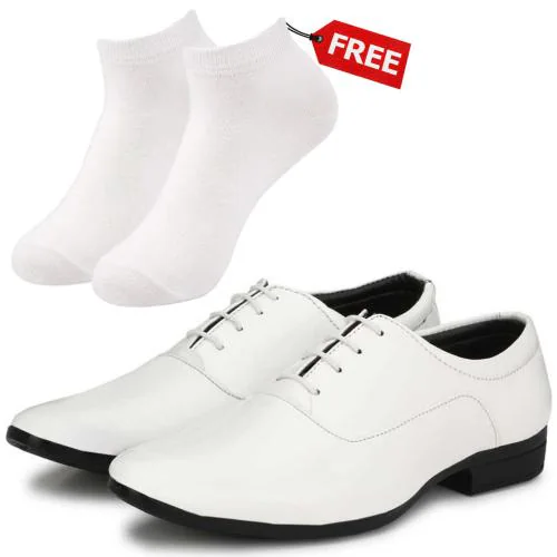 Vitoria Stylish Men's White Lace-Up Sythetic Leather Formal Shoes With Free Socks-10