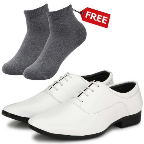 Vitoria Stylish Men's White Lace-Up Sythetic Leather Formal Shoes With Free Socks-6