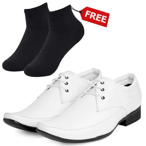 Vitoria Stylish Men's White Lace-Up Sythetic Leather Formal Shoes With Free Socks-6