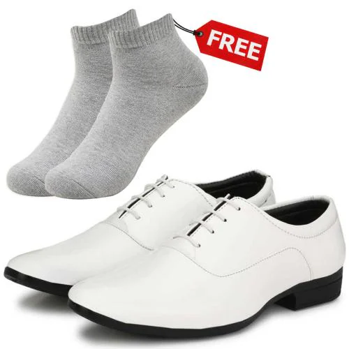 Vitoria Stylish Men's White Lace-Up Sythetic Leather Formal Shoes With Free Socks-7