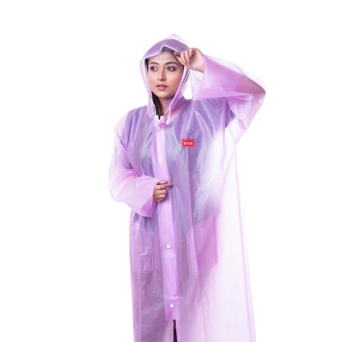 Viva Rainwear Ladies Waterproof Long Sleeves Raincoat Victoria (L, Violet or Purple, New Age Color with Simple Attractive Transparent Design)