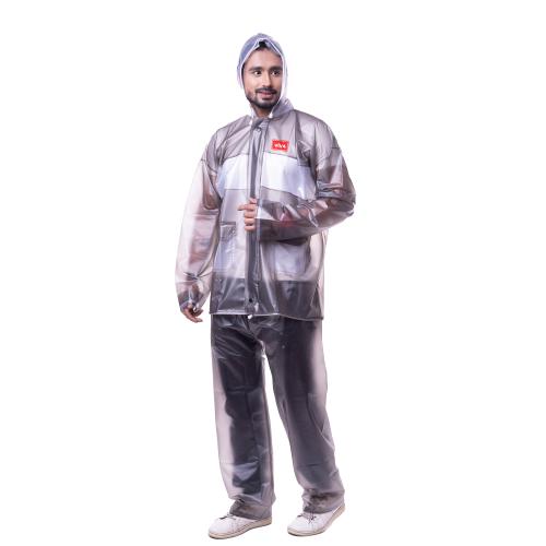 Viva Rainwear Mens Waterproof Long Sleeves Rainsuit Exclusive Raincoat (XXL, Transparent, Smoke & Natural Bi-Colour)