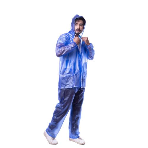 Viva Rainwear Mens Waterproof Long Sleeves Rainsuit Ferrari Raincoat (XXL, Blue, Simple & Transparent Attractive Design)