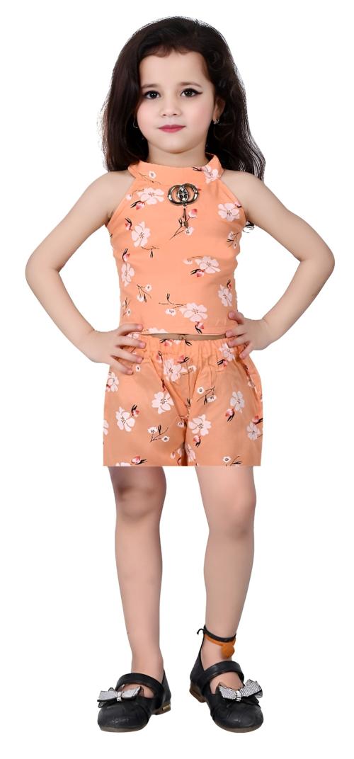 Vivek Girl's Cotton Summer Wear Top & Bottom Set ( Peach )