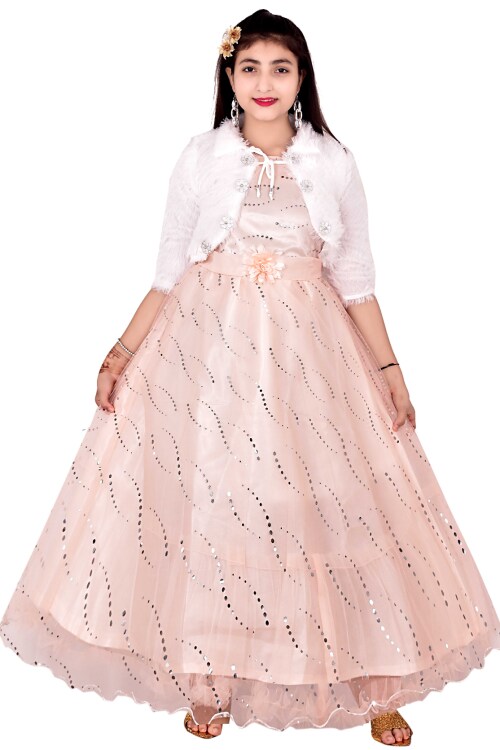 Vivek Girl's Ethnic Wear Gown Dress With Jacket ( Peach )