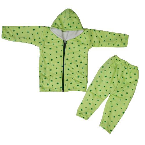Vivek Pc Star Print Woolen Hooded Top & Bottom Set For Kids ( Green )