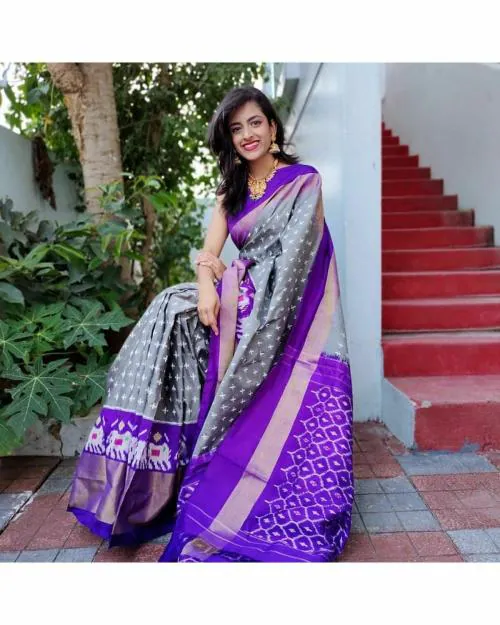 Vkaran Women Purple Kalamkari Bhagalpuri Silk Single Saree